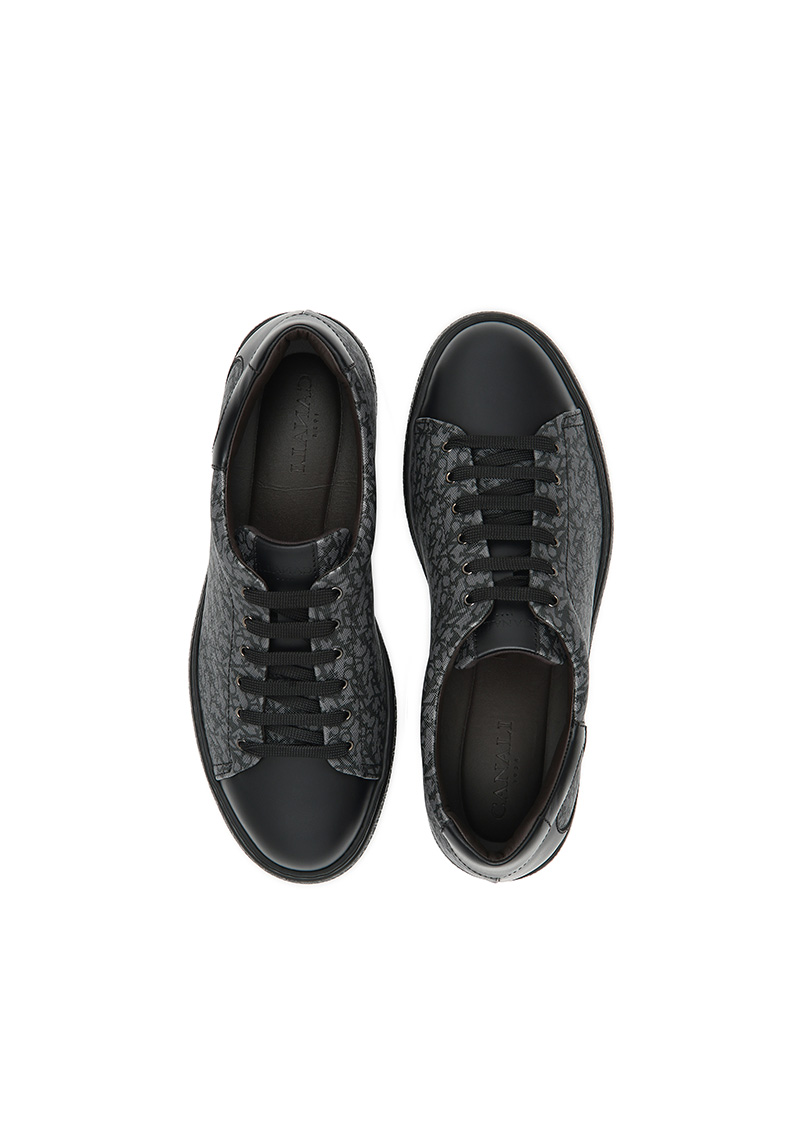 Черно-серые кроссовки с надписью Avenue – это эклектичное сочетание технологичной ткани, телячьей кожи и натурального хлопка.