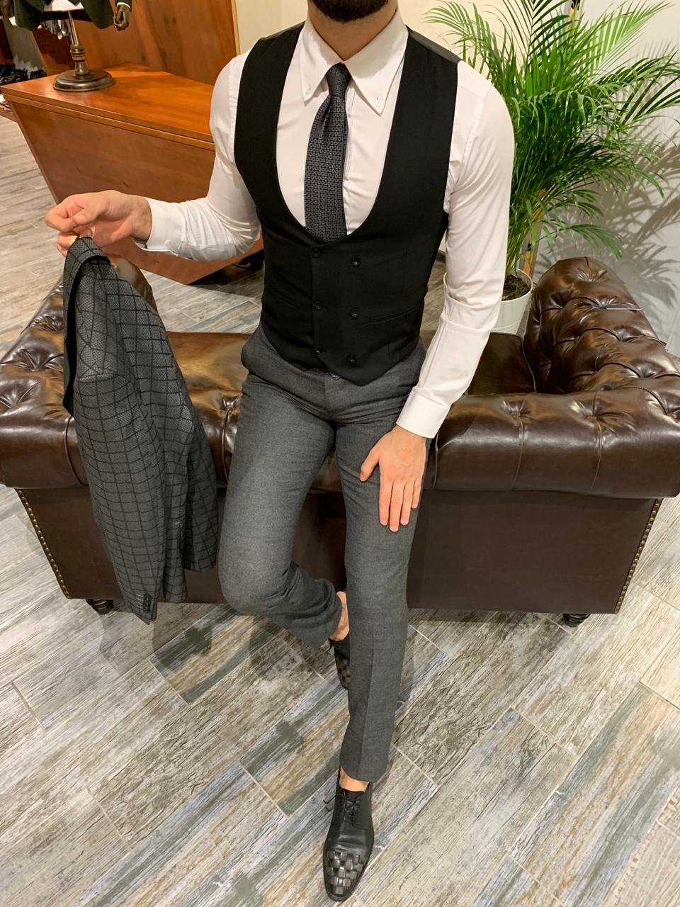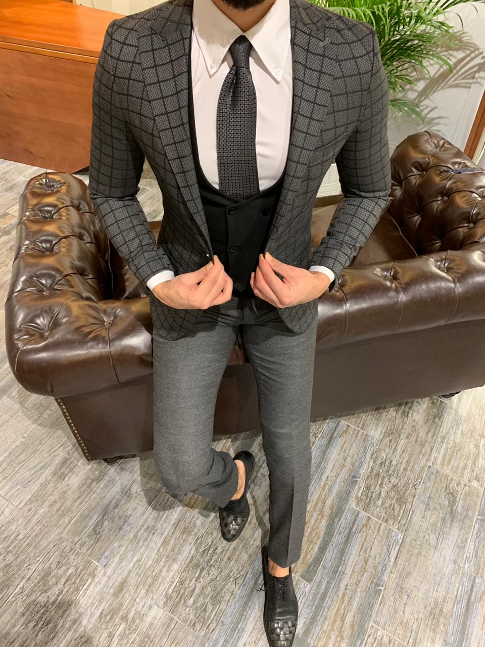 Мужской костюм тройка серый